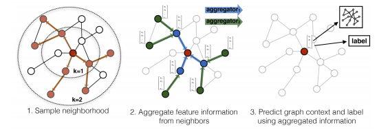 GraphSAGE的核心思想是通过学习一个对邻居节点进行聚合表示的函数来产生中心节点的特征表示而不是学习节点本身的embedding。它既可以进行有监督学习也可以进行无监督学习,GraphSAGE中的聚合函数有以下几种: