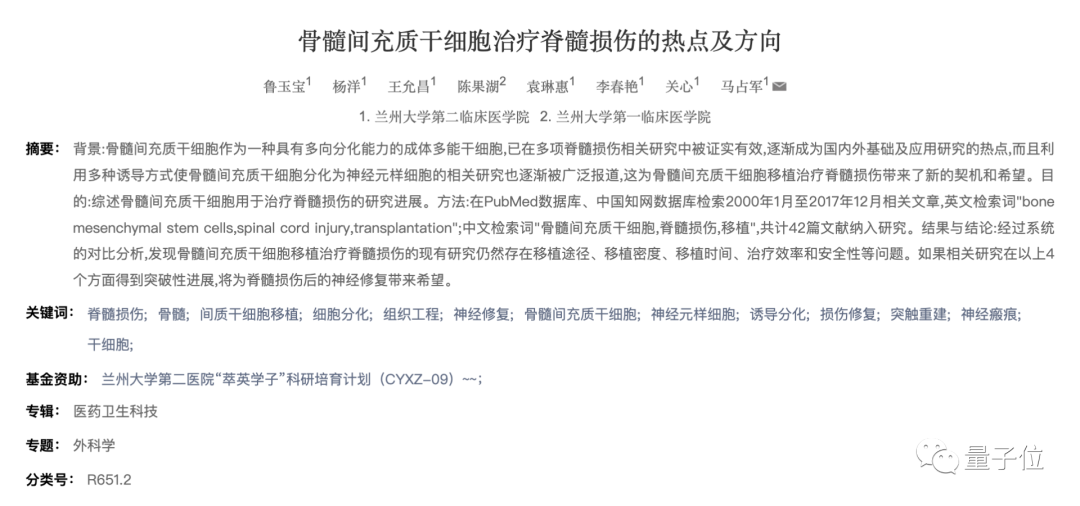 中国知网显示的结果来看,2018年初,鲁玉宝就以一作身份发表了一篇与脊髓损伤相关的文章——《骨髓间充质干细胞治疗脊髓损伤的热点及方向》,并被《中国组织工程研究》收录。
