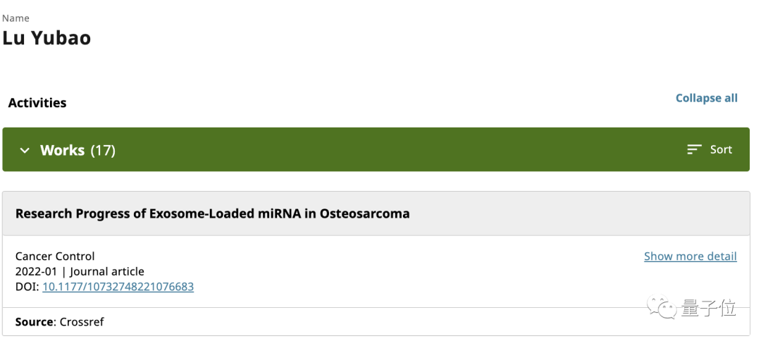 在他本人ORCID(开放学者身份标识)中,显示共有17篇Works。
