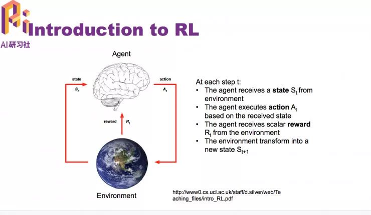 状态,是 agent 从环境中得到的动作;agent,是基于它得到的当前状态后做出相应的动作。reward ,是环境给agent 的一个反馈,收到这个reward就知道做的这个动作是好还是不好。agent 的目标就是选动作,将全部reward最大化。