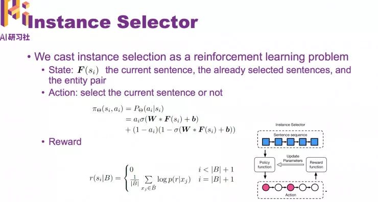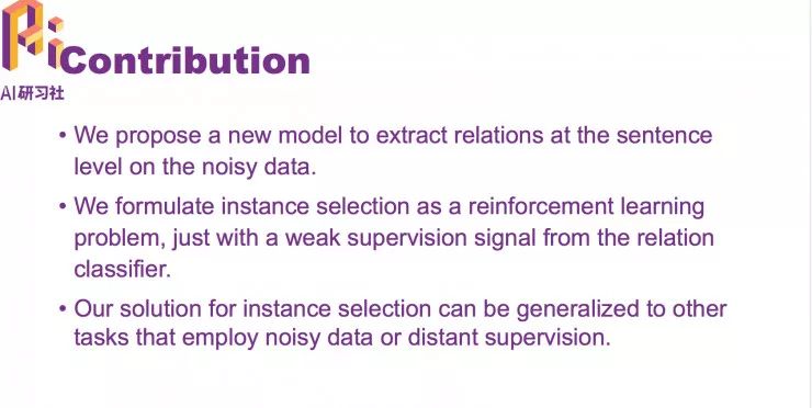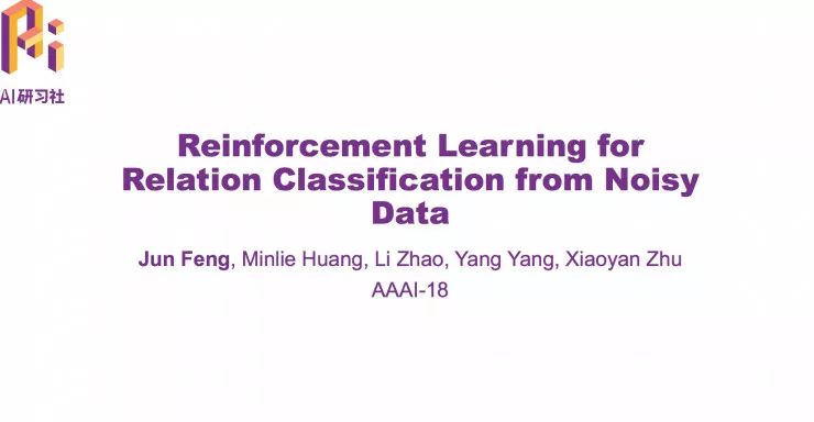 首先是第一个工作:利用增强学习从噪声数据中进行关系抽取 (Reinforcement Learning for Relation Classification from Noisy Data)