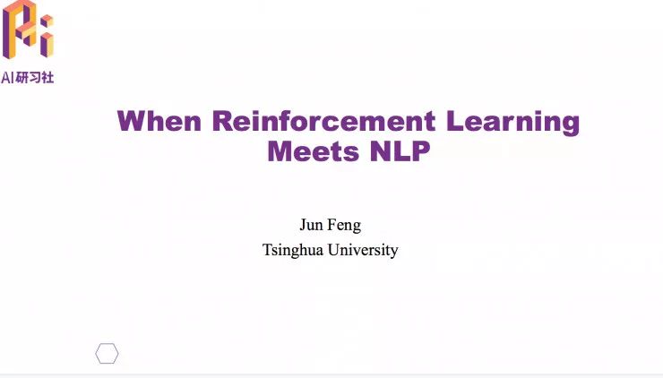 大家好,我是来自清华大学的冯珺,分享的主题是当强化学习遇见自然语言处理,分享内容主要是以下三方面: