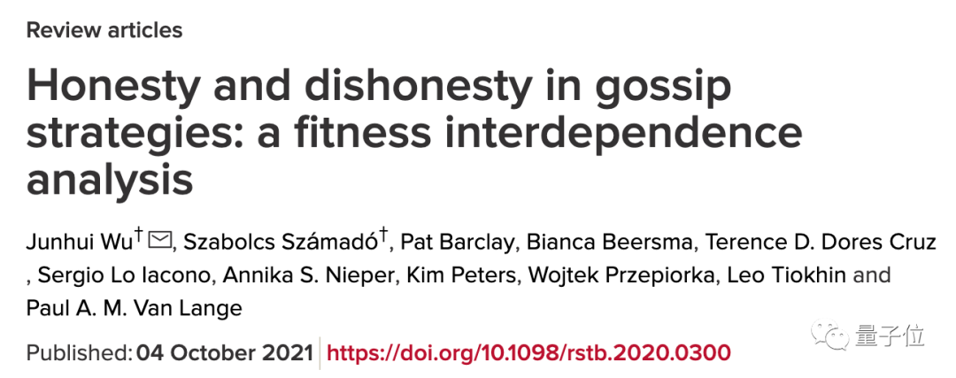 研究同样在去年国庆期间发表,登上了1665年就创刊的《皇家学会哲学汇刊》B卷。