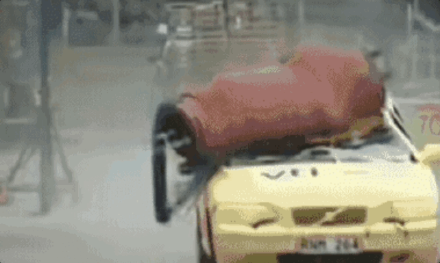 然后,让一辆老沃尔沃和现代萨博,以72公里/小时和以92公里/小时的速度行驶,很好地还原了真实麋鹿撞车事故。