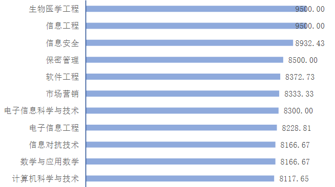不难发现,生物医学工程和信息工程的毕业生拿到了最高的薪资,达到了9500元。