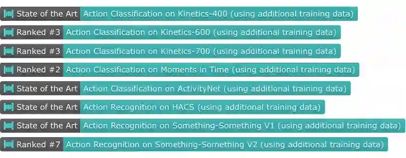 等。这些方法设计即插即用的时序模块,在 ResNet50 和 ResNet101 进行了一系列充分的验证。由于 ResNet 网络较小,这些方法一直未能在视频数据集上取得突破性的性能提升,此时在 Kinetics 系列上最好的方法仍是 Meta 使用大数据集预训练的大模型 CSN