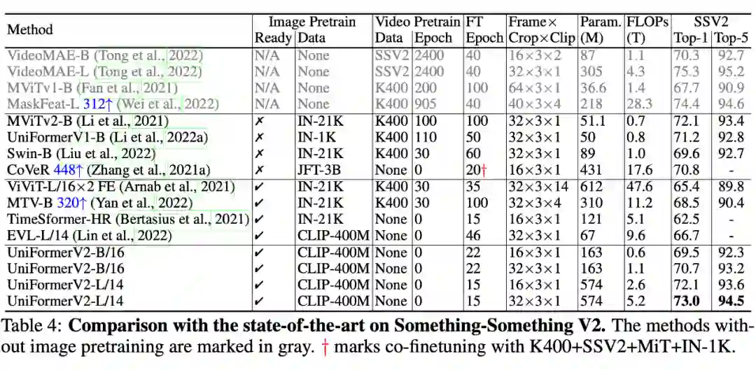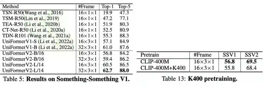 在 Something-SomethingV2 这种强时序相关数据集上,UniFormerV2 远好于以往基于 ViT 设计的一系列方法