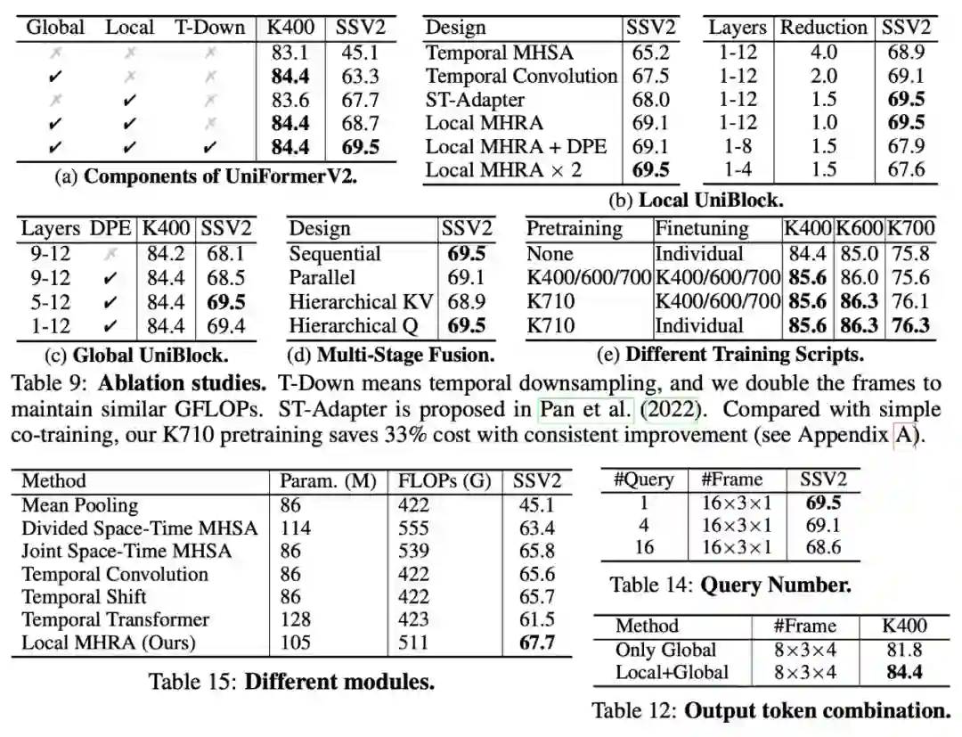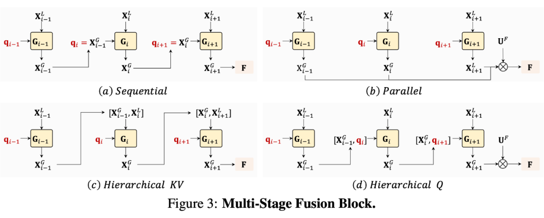 Multi-stage Fusion:为了将不同层的 informative token 融合,得到更复杂的表征,我们探索了包括串行、并行、层次化等几种融合方式,并最终采用最简单的串行设计。即前面层出来的 informative token 会作为下一层的 query token,不断迭代融合多层信息。最后,这些来自多层融合的时空表征会与骨架网络的输入表征进行加权融合,得到最终送入分类层的判别表征。