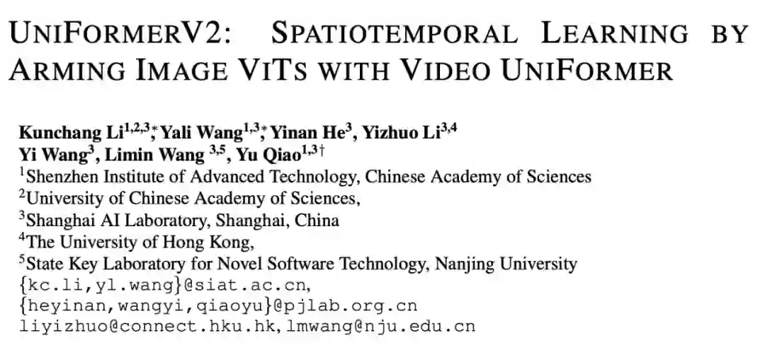 UniFormerV2: Spatiotemporal Learning by Arming Image ViTs with Video UniFormer