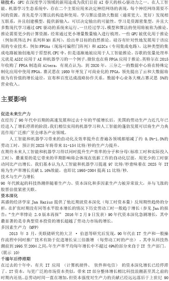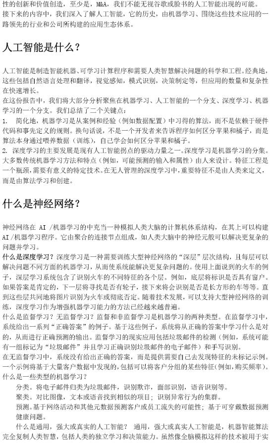 在这份报告中,我们将大部分分析聚焦在机器学习、人工智能的一个分支、深度学习、机器学习的一个分支。我们总结了二个关键点:
