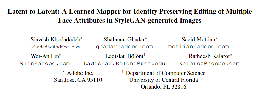 https://openaccess.thecvf.com/content/WACV2022/papers/Khodadadeh_Latent_to_Latent_A_Learned_Mapper_for_Identity_Preserving_Editing_WACV_2022_paper.pdf