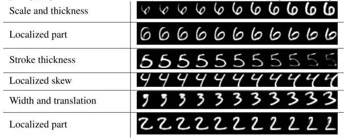 一个证据是人为扰动 capsule 的输出向量。我们可以看到,如果逐渐改变向量的一些分量,表示也很有规律地改变,这是随机的输入难以做到的。