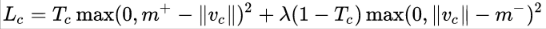 为下 margin,惩罚假阳性(预测到不存在的分类的情况)。 λ 是比例系数,调整两者比重。