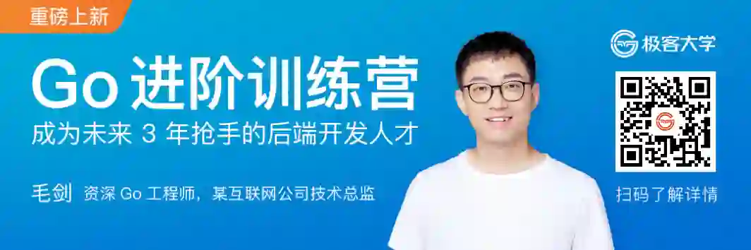 「Go 进阶训练营」第 0 期,采用全程直播授课的形式,将用 13 周时间,带你掌握云计算时代首选编程语言,成为未来 3 年抢手的后端开发人才。