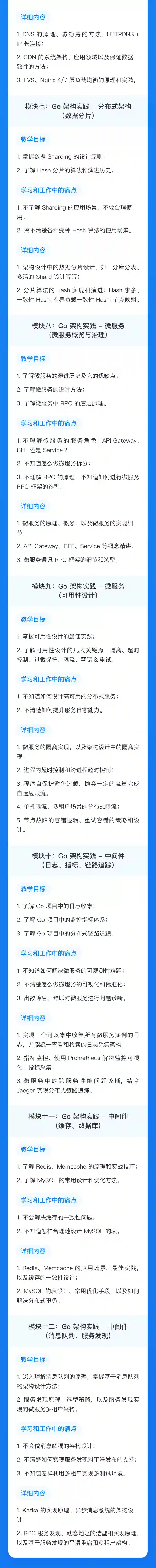 我们的课程培养目标是大厂的资深 Go 工程师、高级 Go 开发工程师、Go 技术专家。按照老师系统性的规划,用心学习,可以帮你摆脱低效和痛苦的自学,事半功倍,学完后可以达到一线互联网大厂中高级 Go 开发工程师的水平。