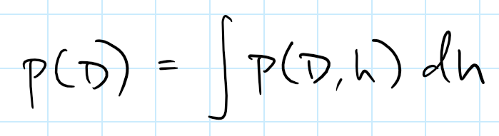 这并非使用与后验概率 p(h|D) 模式相应的参数 h 的单一值来计算 P(x|h),而是一个更加「严格」的方法,它让我们考虑到所有可能的 h 的后验值。这种方法被称为贝叶斯参数估计。