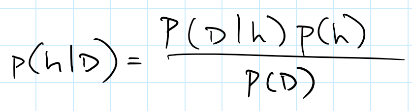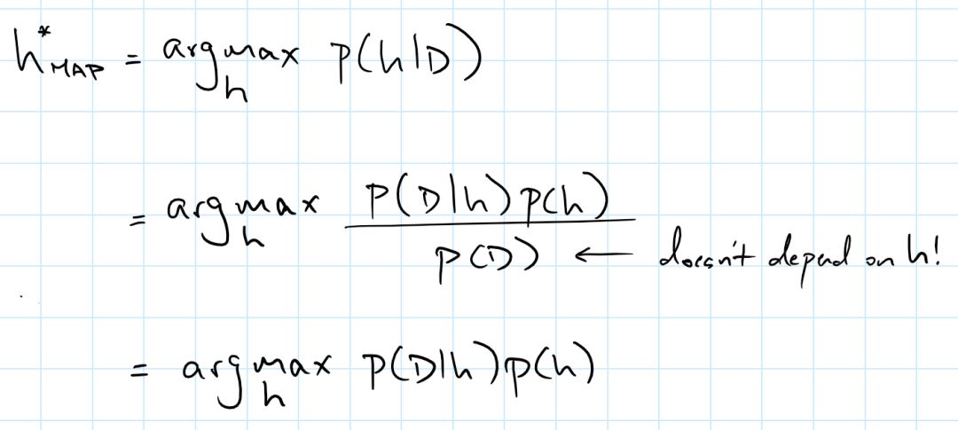 贝叶斯公式:P(h|D)=P(D|h)*P(h)/P(D)