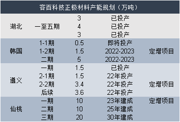 容百科技产能规划