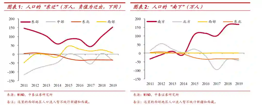 过去我们常讲东、中、西三个区域的差异,如今在全国经济版图中,南北之间的鸿沟日渐扩大。按东西来看,2019年东部省份人口净流入达到150万,按南北来看,南方省份人口净流入可以达到167万。人口南迁从2015年起开始,背后更深层次的原因,是供给侧改革下暴露出南北方产业结构的差异。