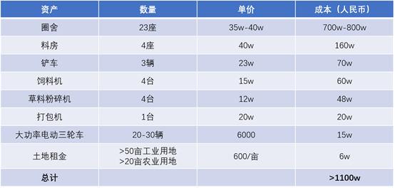 经过厂长盘点,羊场里里外外有3台铲车、4台饲料机、4台草料粉碎机以及1台打包机,都是大型器械,另外还有几十辆用来收羊的大功率电动三轮,50亩厂区用地、和20亩草场的年租金,每亩600元,资产投入早已超过了千万。