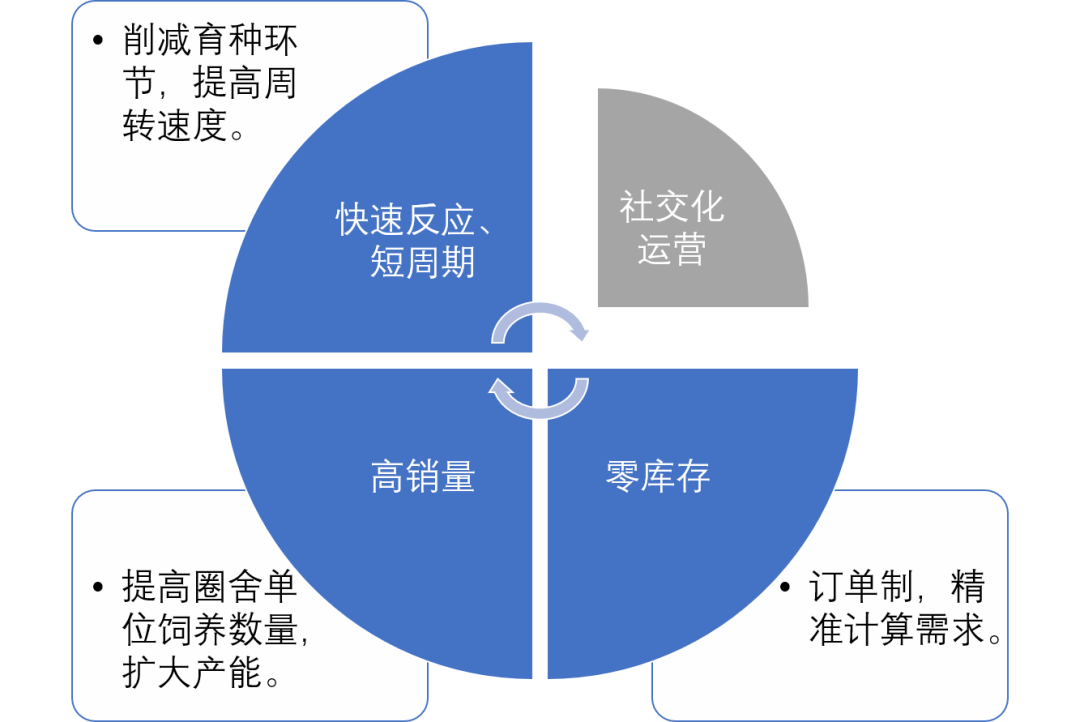 第一个要砍掉的就是育种环节。母羊怀孕、哺乳期衔接长达半年多,占一个销售周期的70%,由此导致的分圈,又严重限制了单个羊圈饲养成品羊数量