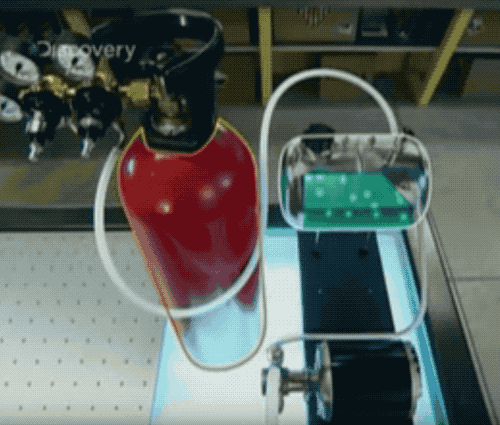 首先是将水和二氧化碳混合。自来水经过水过滤系统净化为可以饮用的水,进入碳化器和气瓶提供的二氧化碳里,一混合就形成了苏打水……这也是可乐机的关键步骤,毕竟可乐没了,总得有点苏打水吧!