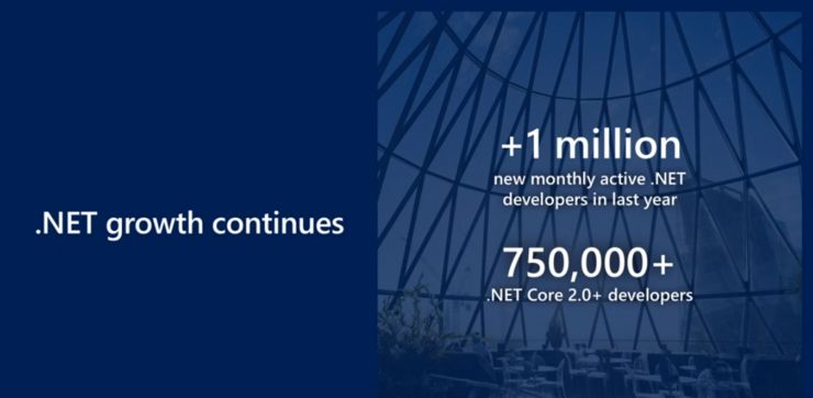 微软在现场承诺,将在.NET Core上为这些框架做出贡献。第一波代码将于今天在GitHub上发布,未来几个月将出现更多代码。据最新数据,目前GitHub拥有2800万开发者。