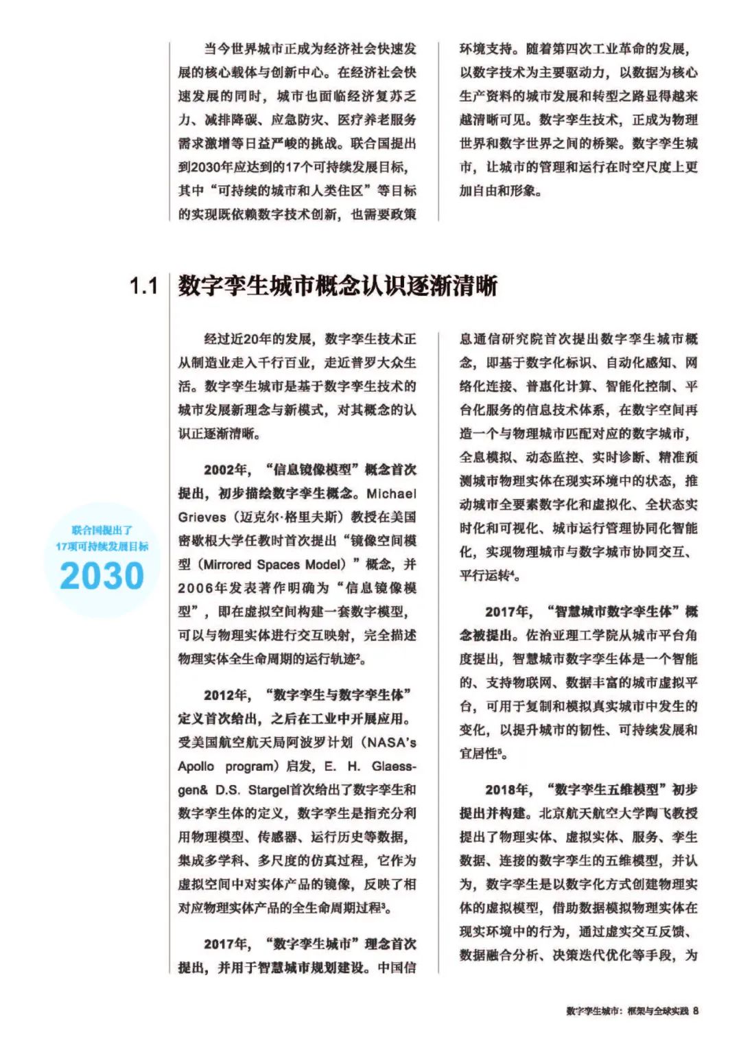 数字孪生城市追求三个愿景:1)更加集约高效的城市生产经营;2)宜居便捷的城市生活空间;3)可持续的城市生态环境。