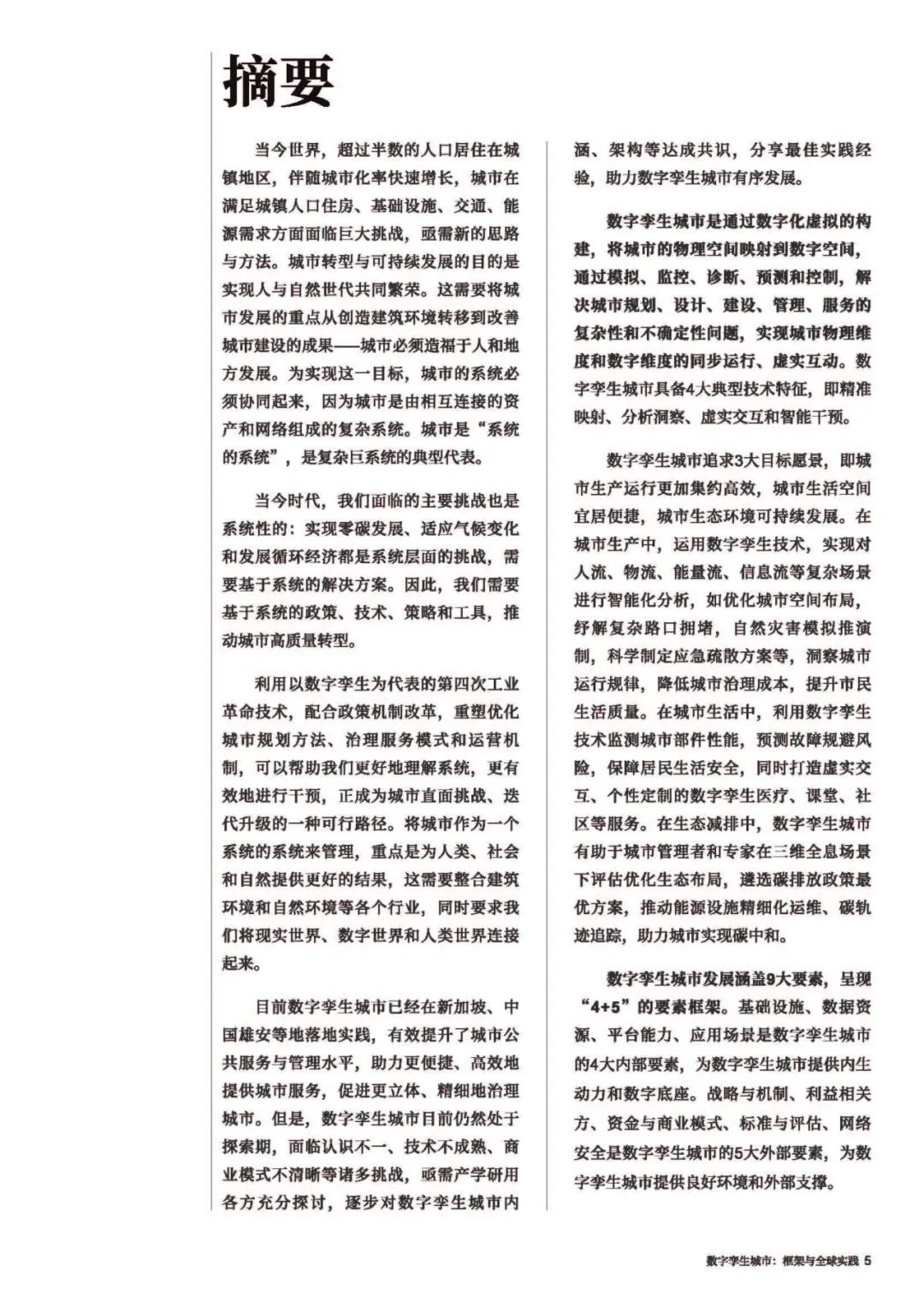 该报告是中国通信技术研究院智慧城市团队与世界经济论坛城市转型合作伙伴共同研究的成果。报告提出了推动数字孪生城市发展的四大技术特点、三个愿景和九个关键要素,以及构建能够应对当前挑战的高质量数字孪生城市的思路和建议。该研究结果对世界各地探索数字孪生城市建设的城市管理者,以及积极拥抱数字孪生技术并推动其应用的企业家和投资者具有启示意义。