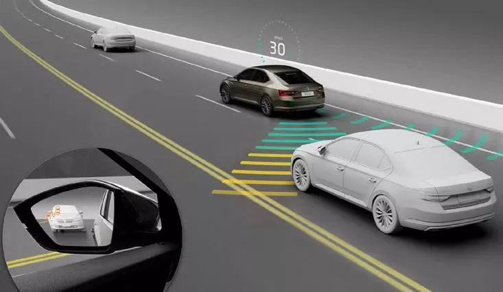 盲点检测系统,通过车辆周围排布的防撞雷达、多普勒雷达、红外雷达等传感器、盲点探测器等设施。用于监测自车后侧方盲区内其他汽车的系统,用以提醒驾驶员后侧方存在碰撞风险,请勿变道。该功能的实现依赖于后侧向毫米波雷达对障碍物的检测能力,并以此为根据对驾驶员进行预警。也用于侧向辅助。