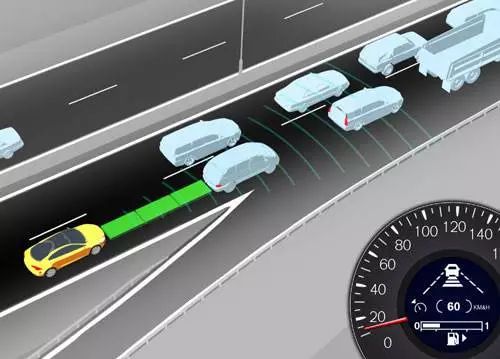 ACC的原理并不复杂。首先设置一个跟车距离,随后通过长距离毫米波雷达实时监测前方的汽车,通过对发动机和制动器的控制,使前车与自车始终保持在设定的距离。这样驾驶员就可以解放双脚。