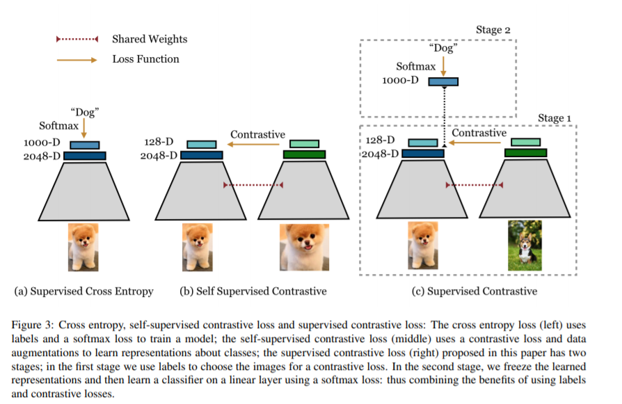 交叉熵是图像分类模型监督训练中应用最广泛的损失函数。在这篇论文中,我们提出了一种新的训练方法,在不同架构和数据扩充的监督学习任务中,它的表现始终优于交叉熵。我们修改了批量对比损失,这是最近被证明在自监督学习强大表示是非常有效的。我们能够比交叉熵更有效地利用标签信息。在嵌入空间中,将同一类的点聚在一起,同时将不同类的样本聚在一起。除此之外,我们还利用了关键的成分,如大批量和标准化嵌入,这些已经被证明有利于自监督学习。在ResNet-50和ResNet-200上,我们的交叉熵性能都超过了1%,在使用自动增广数据增强的方法中,我们设置了78.8%的最新水平。这一损失也清楚地表明,在校准和准确性方面,对标准基准的自然损坏具有鲁棒性。与交叉熵相比,我们的监督对比损失更稳定的超参数设置,如优化或数据扩充。