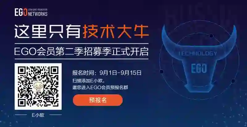 EGO 将技术领域的精英们聚合在一起,旨在促成 1+1>2 的微妙化学反应。如果你自认为有资历成为这个朋友圈中的一员,不妨点击“阅读原文”,趁着 9 月 1 日到 9 月 15 日的 EGO 会员招募季,报名加入。
