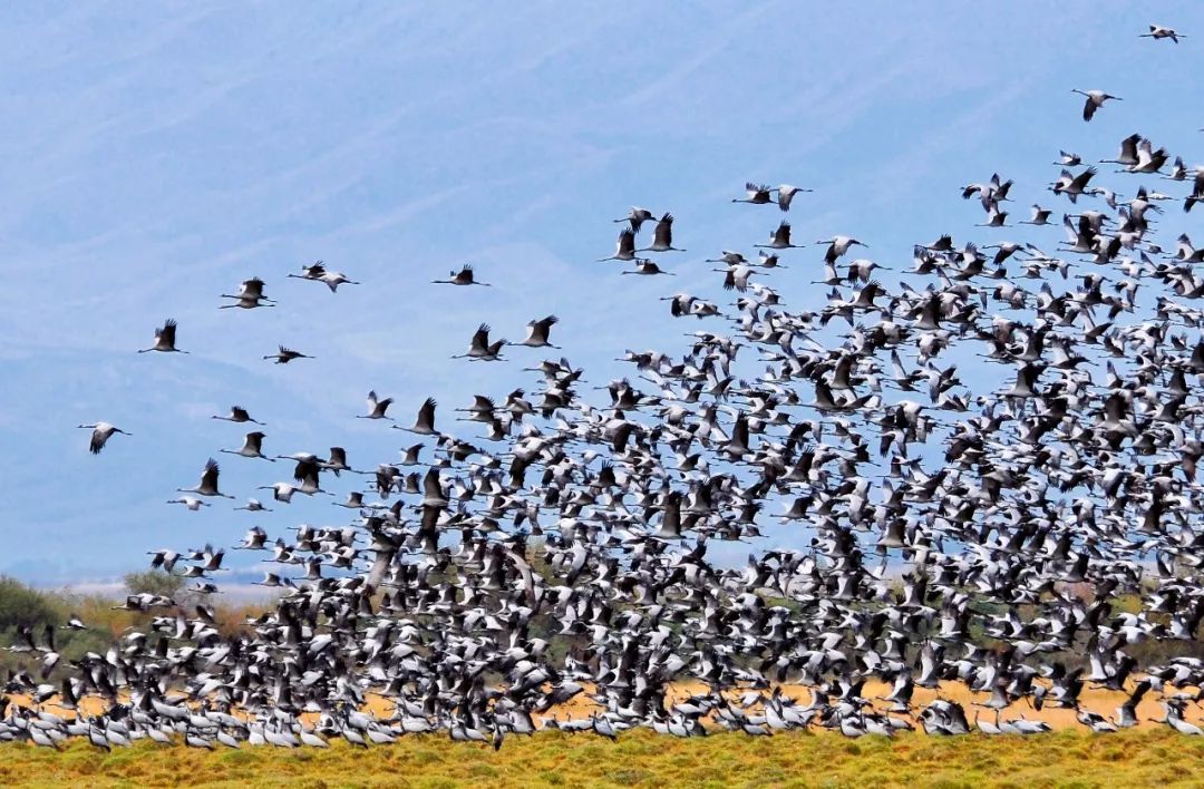 (蓑羽鹤南飞,河西走廊,摄影师@仇梦晗)
