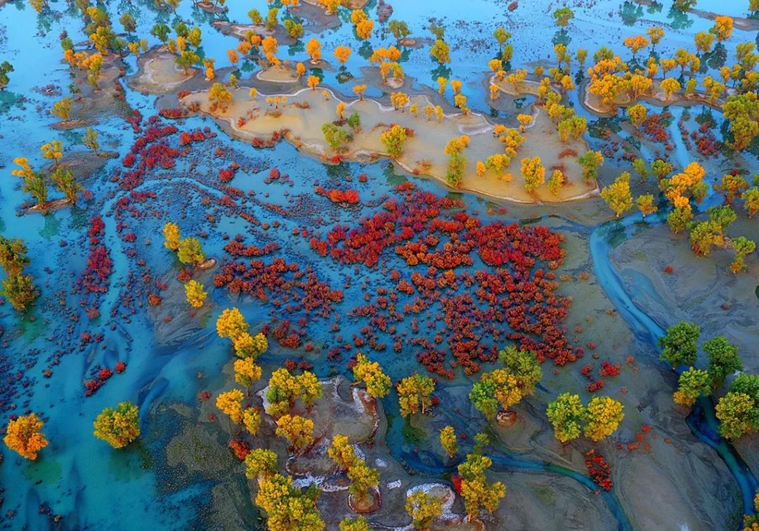 (秋色席卷大地艺术想像,制图@张靖&王朝阳/星球研究所)