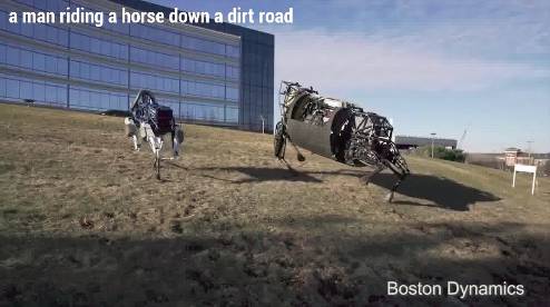 除了生成(虚假)毕业论文,任何指定风格的语句(D.J. Trump,Shakespear, etc.),我们还可以利用神经网络来给图像、动图添加标题和评论。下面就是一个例子,来自Karpathy。
