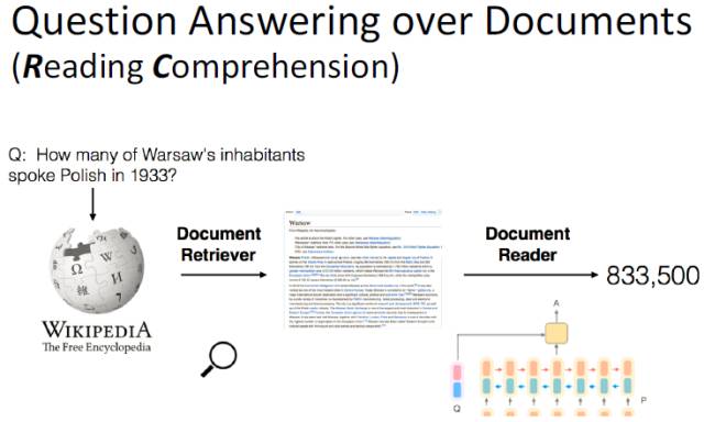 下面是基于阅读理解的开放领域闲聊工作机制,图片来自Reading Wikipedia to Answer Open-Domain Questions (陈丹琦)