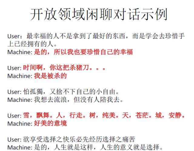 文本生成是比较学术的说法,通常在媒体上见到的“机器人写作”、“人工智能写作”、“自动对话生成”、“机器人写古诗”等,都属于文本生成的范畴。
