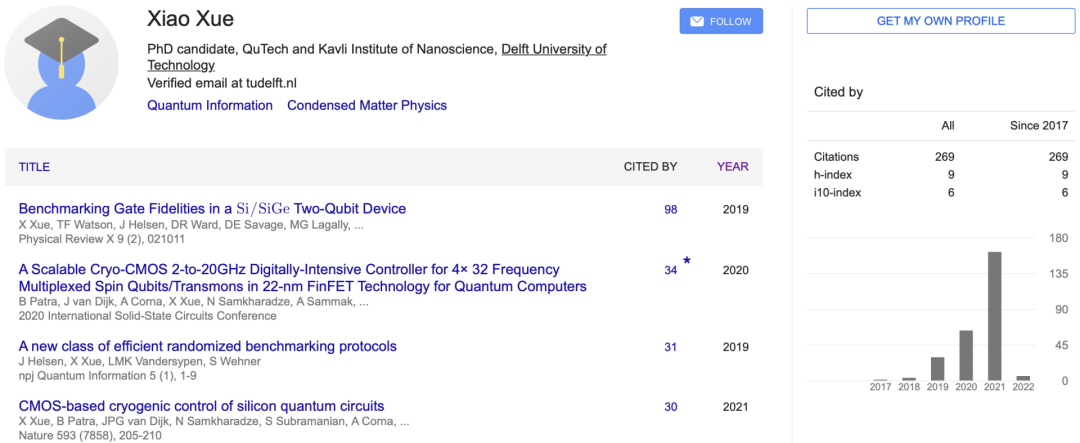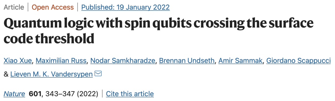 「Quantum logic with spin qubits crossing the surface code threshold」的一作是Xiao Xue,来自代尔夫特理工大学。