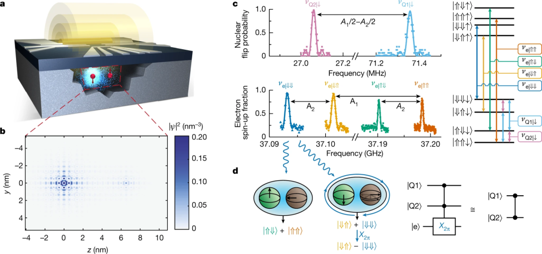 另一个团队则使用磷原子核实现了类似的目标。原子核之间的相互作用是由微波天线控制的电子介导的。
