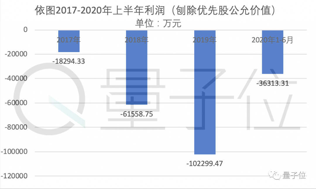 所以如果刨除优先股公允价值变动损失,2017年到今年上半年4年里,依图亏损分别为:1.83亿、6.15亿、10.23亿,3.63亿。