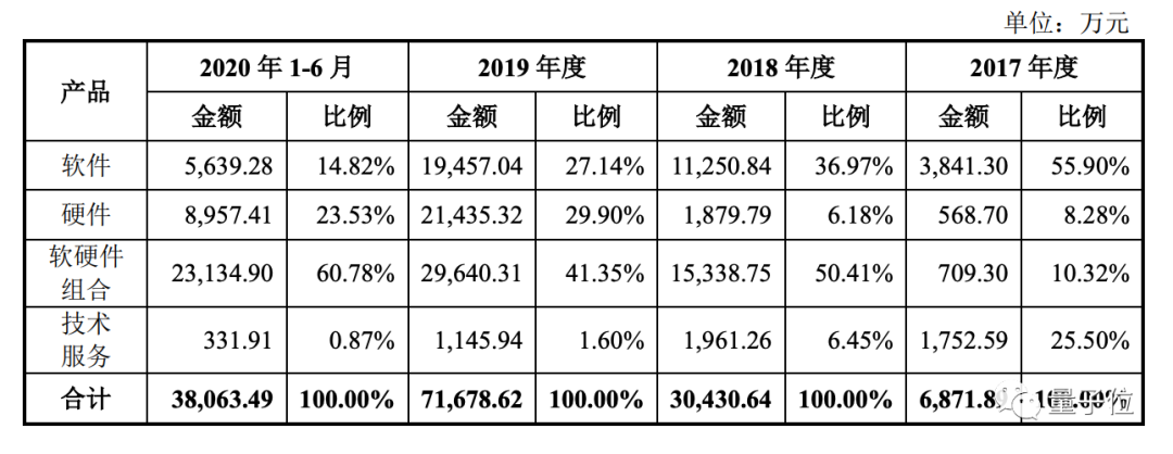 在2017年和2018年,依图硬件、软硬件组合实现的营收占比,从18.60%、56.59%,实现了到2019年和2020上半年的71.25%和 84.31%。