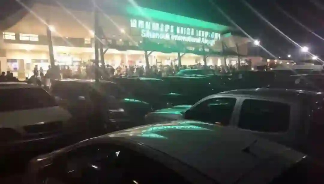 禁赌令下,机场大厅连停车场都停满了车辆,还不断地有大批大批的旅客往机场里面涌