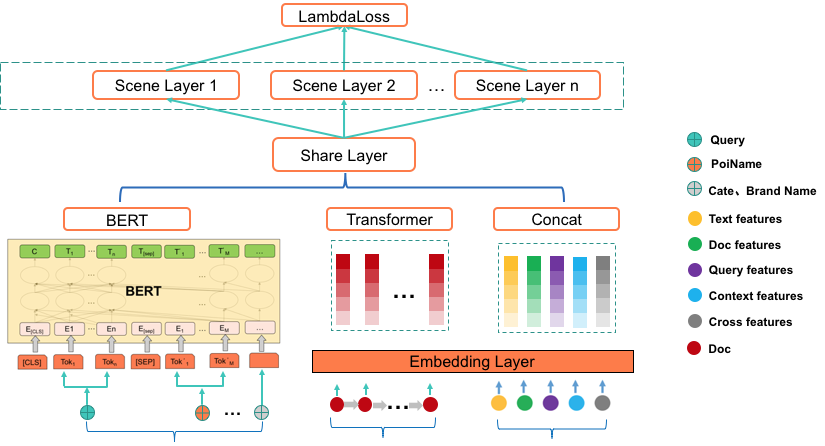 损失函数:搜索业务更关心排在页面头部结果的好坏,将更相关的结果排到头部,用户会获得更好的体验,因此选用优化NDCG的Lambda Loss[34]。