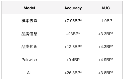 经过样本去噪和品牌样本优化后,BERT相关性模型在Benchmark上的Accuracy提升23BP,相应地L2排序排序模型离线AUC提升17.2BP。