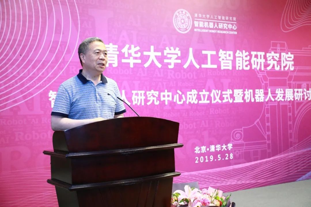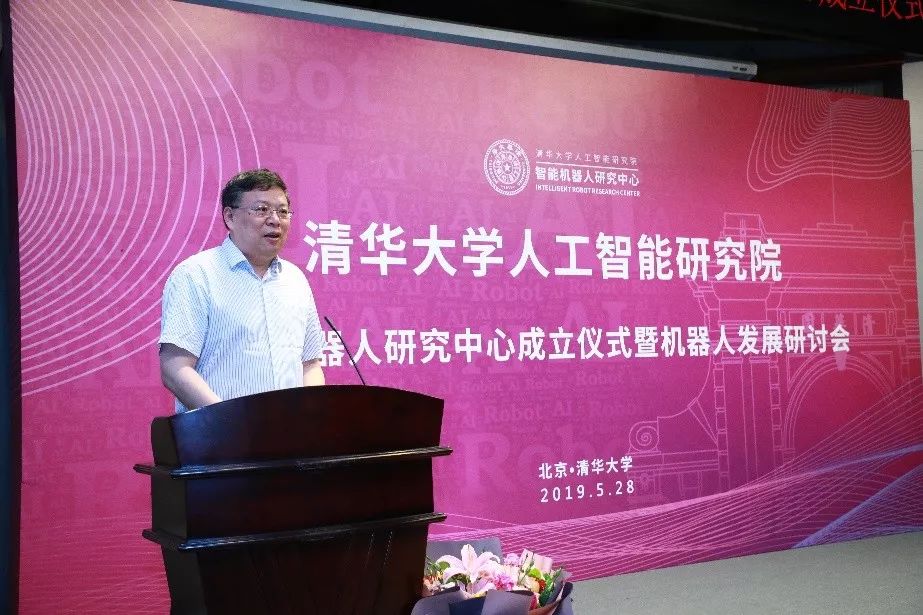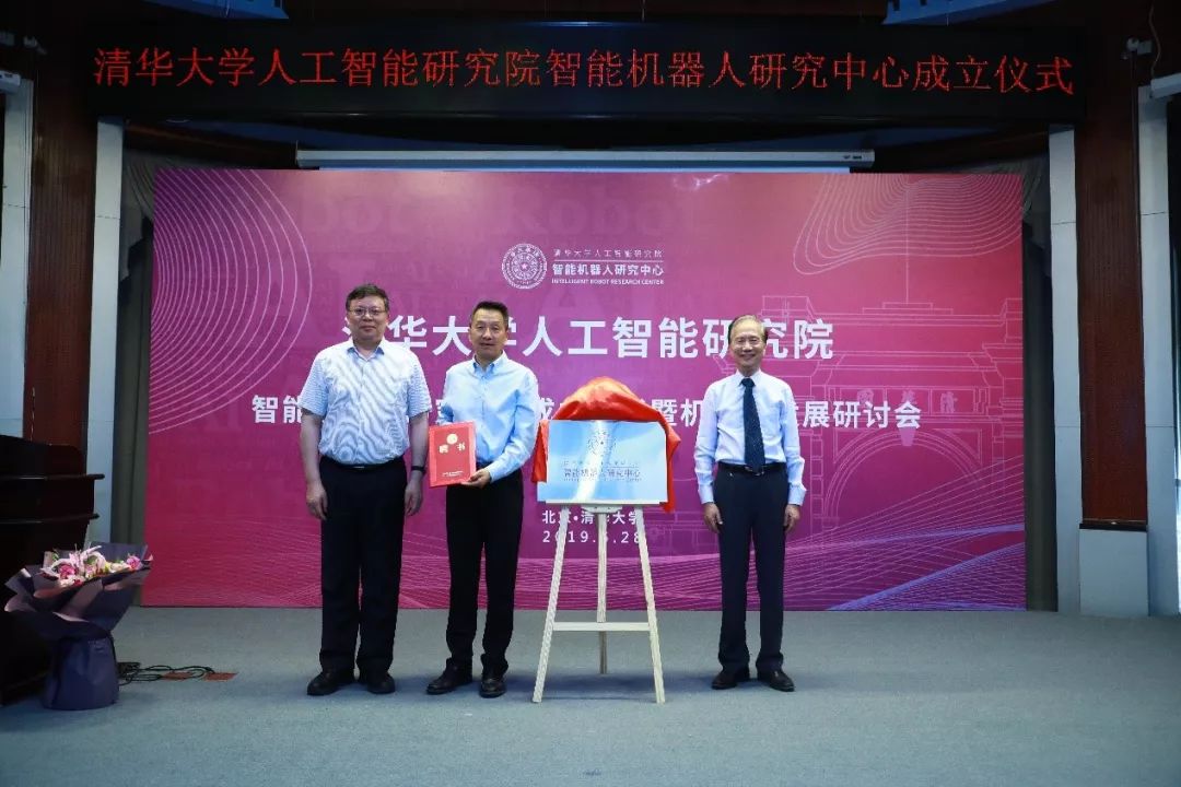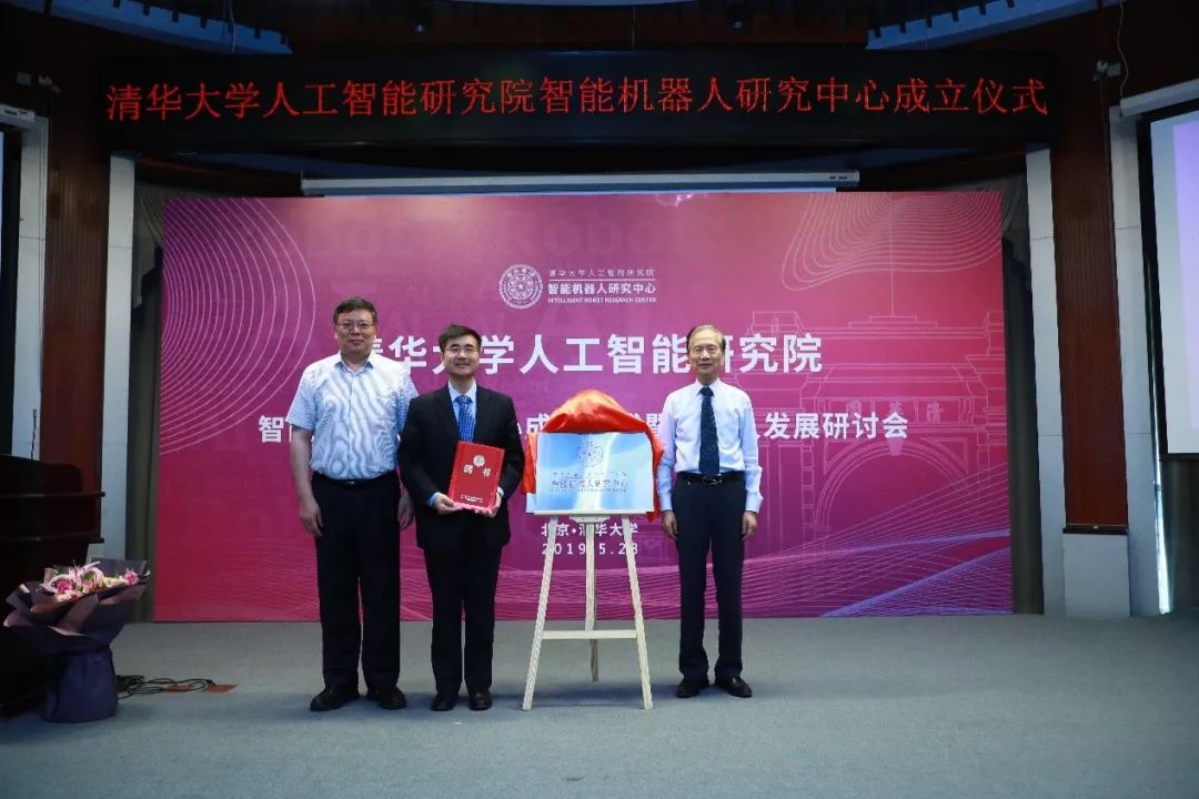 2019年5月28日午时,清华大学人工智能研究院智能机器人研究中心成立仪式在清华大学FIT楼多功能报告厅举行。清华大学副校长、清华大学人工智能研究院管委会主任尤政院士,清华大学人工智能研究院院长张钹院士出席成立仪式并共同为中心揭牌。清华大学人工智能研究院常务副院长孙茂松教授主持会议。科技部高技术中心刘进长研究员、北京航空航天大学王田苗教授、德国汉堡大学张建伟教授、中国电子学会梁靓副秘书长、清华科研院机构办甄树宁等多位嘉宾、机器人大讲堂发起人陈晓东、碧桂园企业代表朱磊、宾果机器人CEO闵海波、越疆机器人CEO刘培超、立德共创机器人服务平台(机器人大讲堂)总经理潘月等企业人士以及新华网、参考消息、人民网等多家媒体记者150多人出席开幕式。