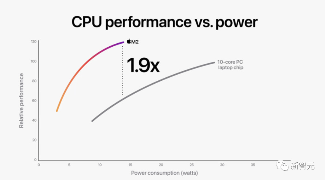 与友商最新的10核笔记本电脑的芯片相比,在同样功率下,M2芯片性能是前者的1.9倍。在相同性能下,M2的功耗仅是前者的四分之一。