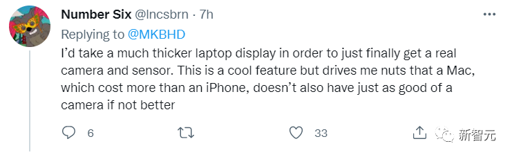 网名「老六」的用户表示,「倒不如让笔记本厚一点,给我整个真的摄像头和传感器...这功能看着是不错,但你仔细想想,一个Mac比iPhone贵多了,居然还要接个iPhone来提升视频质量...」