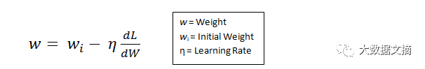 现在,我们要做的是在网络中进行反向传递,它决定了哪些权重造成了最大的损失,并找出调整它们的方法,以减少损失。一旦我们计算出这个导数(dL/dW,W是权重),我们就可以进入最后一步,即权重更新。在这一步,我们对过滤器的权重进行更新,更新的方向即是我们刚才计算出的导数/梯度的反方向。