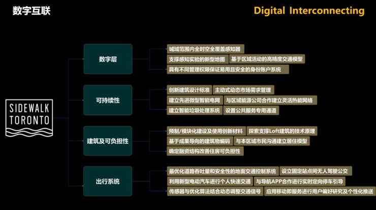 对标多伦多SIDEWALK项目,他们在可持续建设、可负担性住房、以及出行交通上增加了数字层,也就是我们建立了数字的基础设施,能够全覆盖,特别是通过物联网、5G等先进技术,能够随时知道城市是如何运作的。